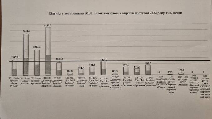 Так, магазин Гранца в п/п «Порубное» Черновицкой таможни установил в 2022 году всеукраинский рекорд, продав 4,2 млн пачек сигарет, пробивая по 25 пачек на каждый чек. Как такое возможно? Не знает никто.